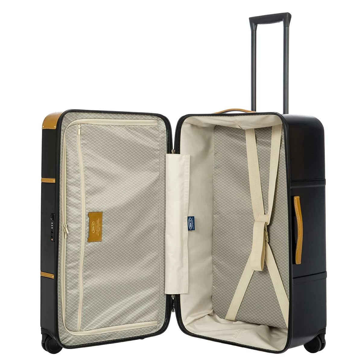 The 30 inch Baule (Trunk) spinner from Bric’s BELLAGIO collection. The elegance of the Tuscan leather inserts is paired with the high-tech shell made from Makrolon® polycarbonate, the innovative material that guarantees maximum resistance to shocks and scratches, as well as being extremely lightweight. This sophisticated and functional 4 wheeled hard side duffel spinner is the perfect companion for every trip.