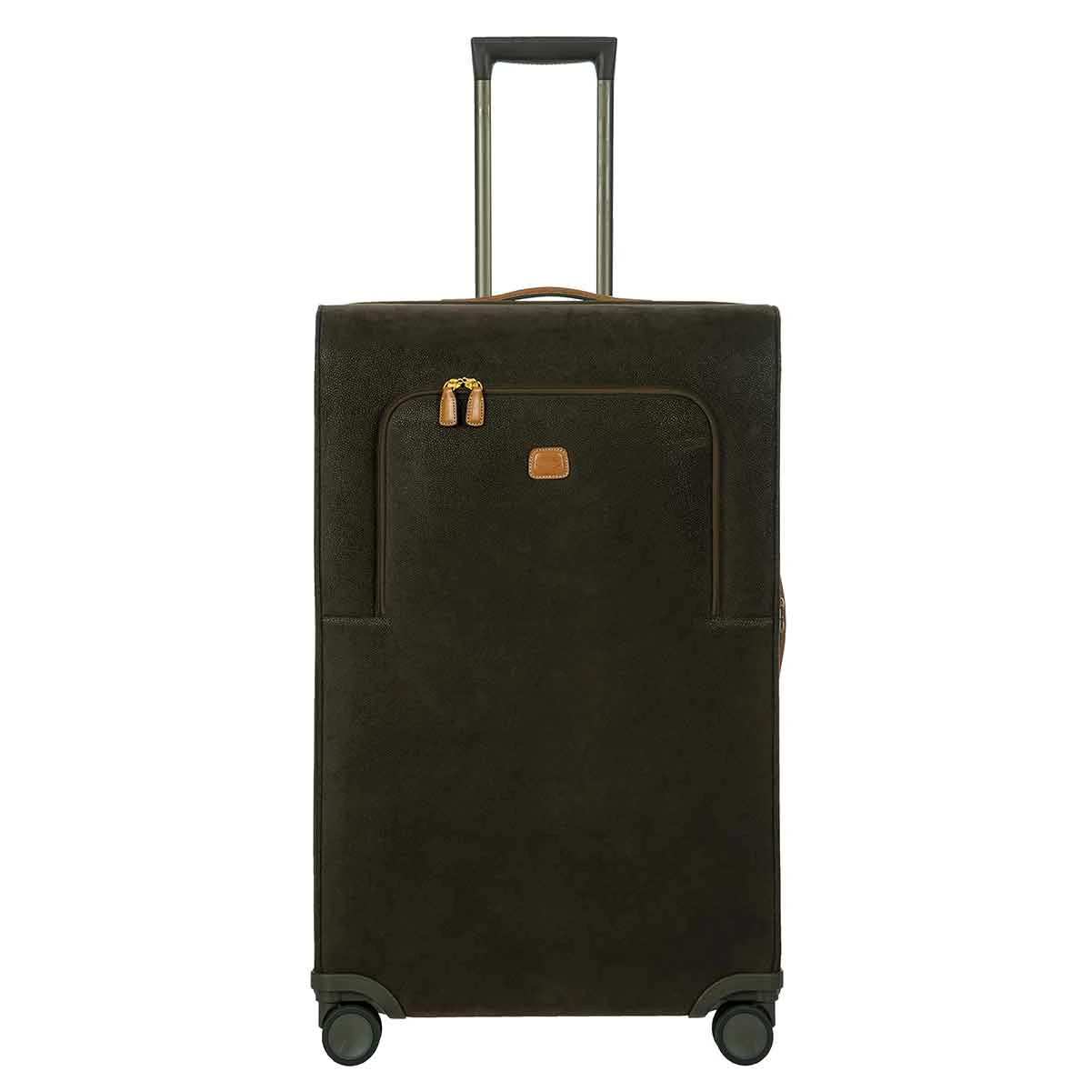 The 30 inch spinner from Bric’s LIFE collection comes with all the features needed to face every trip in perfect comfort, without ever forgetting about style. The Bric’s suede looking material (PVC) is durable, weatherproof and cleanable. The vegetable tanned Tuscan leather finishes take on an aged look over time, making this carry-on trolley unique and personal.