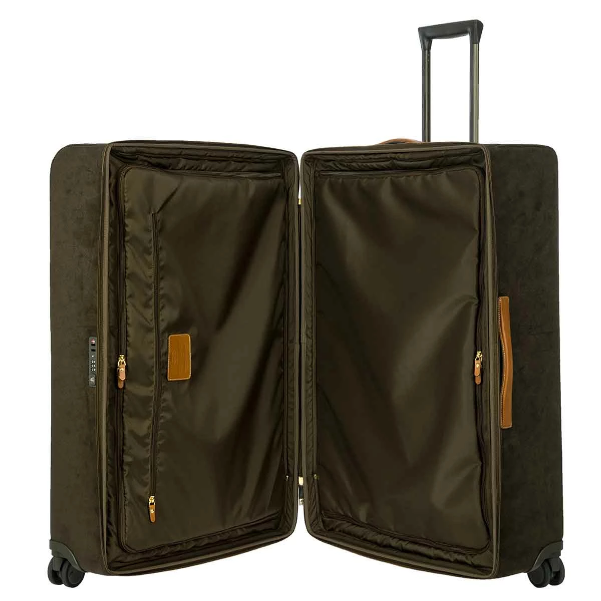 The 32 inch spinner from Bric’s LIFE collection comes with all the features needed to face every trip in perfect comfort, without ever forgetting about style. The Bric’s suede looking material (PVC) is durable, weatherproof and cleanable. The vegetable tanned Tuscan leather finishes take on an aged look over time, making this carry-on trolley unique and personal.