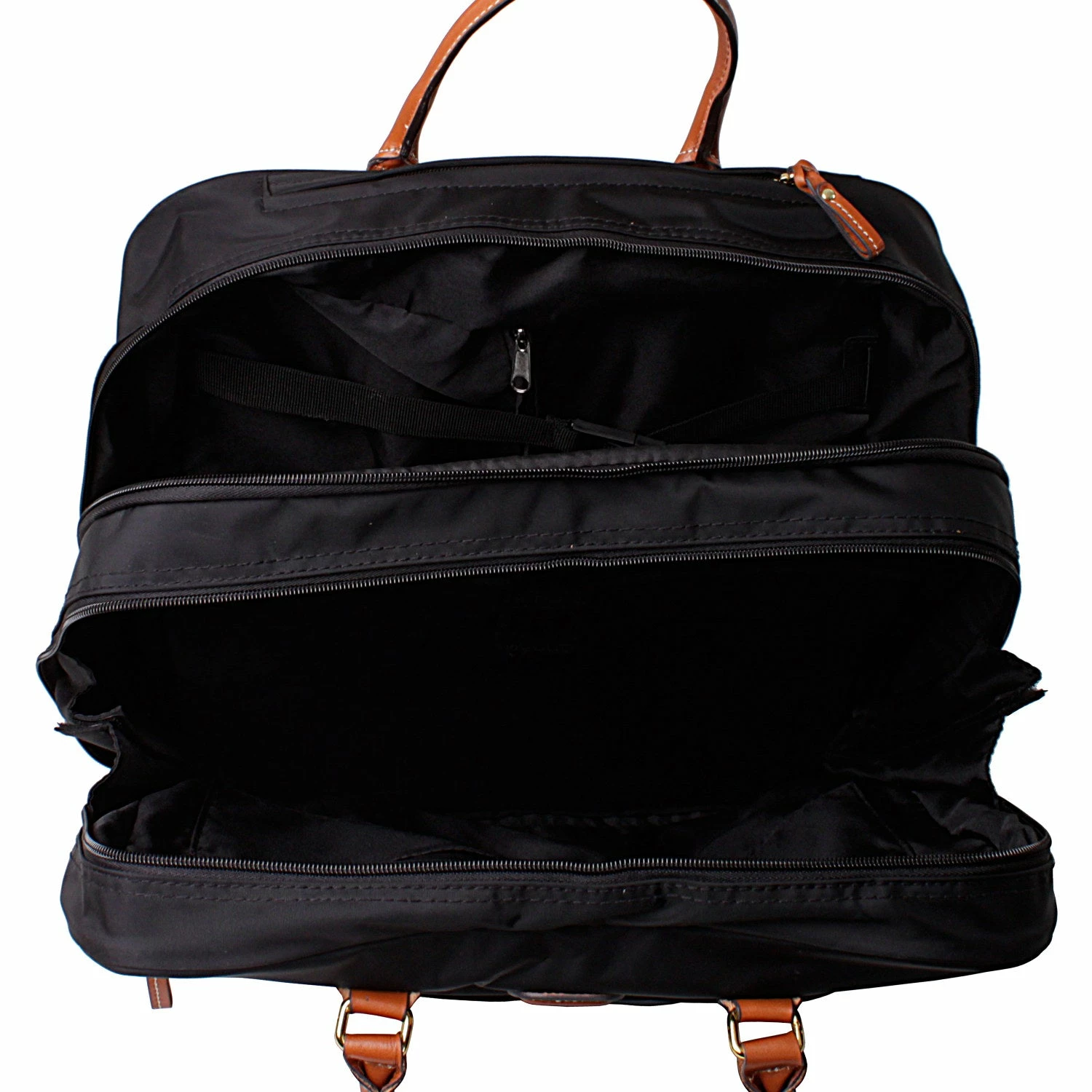 The Bric’s X-Travel Pilot Case is crafted in polyester with genuine leather trim and is part of the X-bag / X-travel line which is based on the concept of transformability and functionality for the road warrior. Featuring double carry handles, retractable trolley handle, two roomy compartments, large front pocket, internal pocket and two in-line wheels. Making it a breeze to carry.