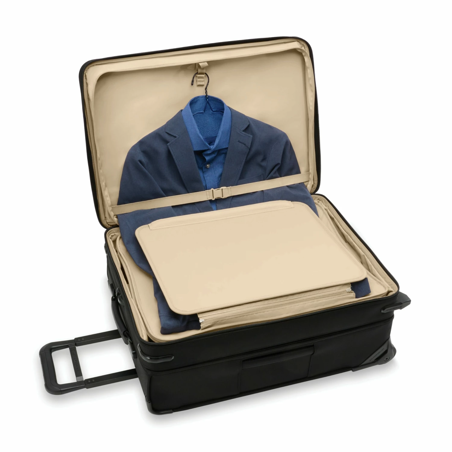 - Built-in tri-fold garment folder with foam roll bar neatly holds 1-2 suits and prevents wrinkling