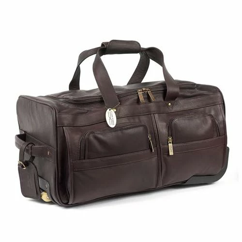 The Claire Chase 22″ Rolling Duffel in Assorted Colors features durable, lightweight top-grain cowhide leather with antique brass hardware. Three interior pocks and three large exterior pockets provide space for all your accessories and frequently needed items. The extra long handle makes getting through busy airports easy and comfortable.