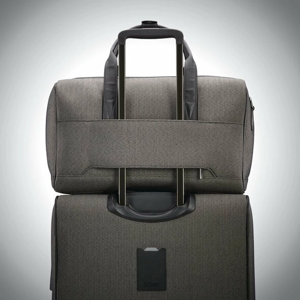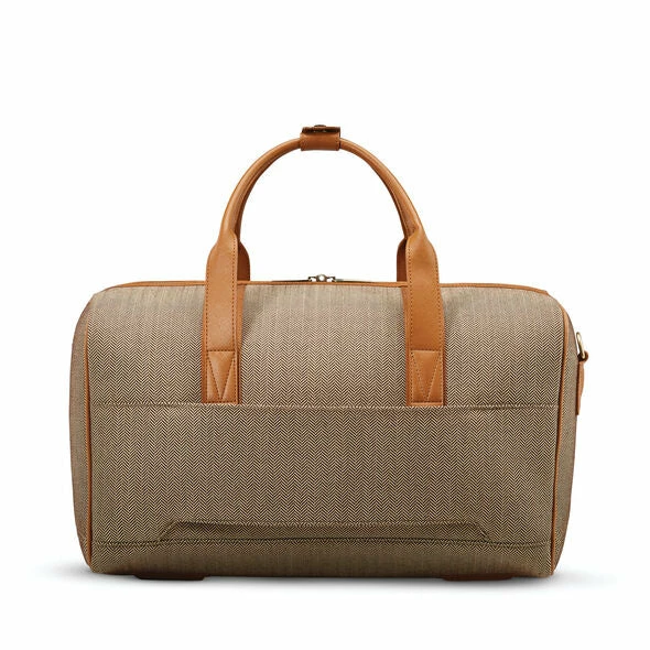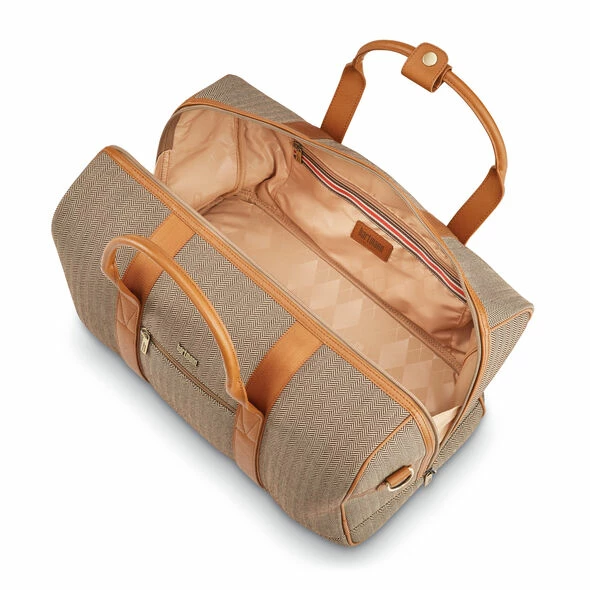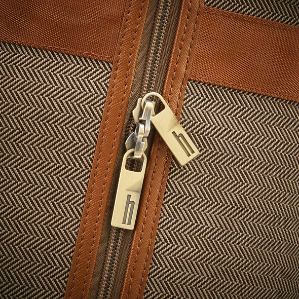 Steal away for a weekend in style with this tailored, mid-sized bag. Hartmann signature herringbone fabric and interior Ducordâ„¢ striped accents set a distinctive look, while padded handles and strap ensure carrying comfort. Or travel hands-free by slipping the SmartSleeveâ„¢ over your spinner handle.