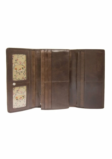 The Mancini Casablanca Ladies’ RFID Secure Trifold Wallet celebrates the fusion of traditional and contemporary styling. Effortlessly urban-chic with a laid back attitude. Featuring the latest RFID wave blocking technology to ensure your data and cards are safe. The special metallic layers integrated into the card slots prevent thieves from electronically reaching into your wallet. Finely hand-crafted in top grain leather.