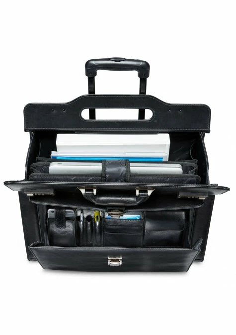 This high-capacity wheeled laptop catalog case featuring a removable padded laptop sleeve to ensure that your laptop is safe and secure. This versatile case is equipped with a zippered front organizer and separate compartments designed for transporting documents, folders, product samples, and lots more!