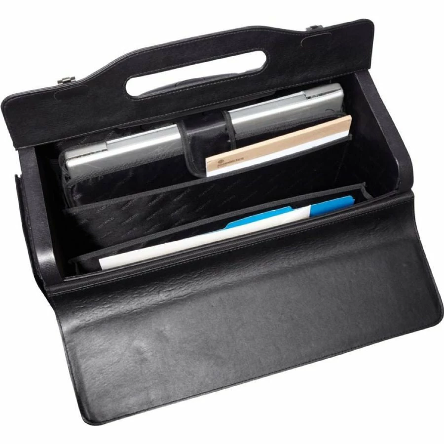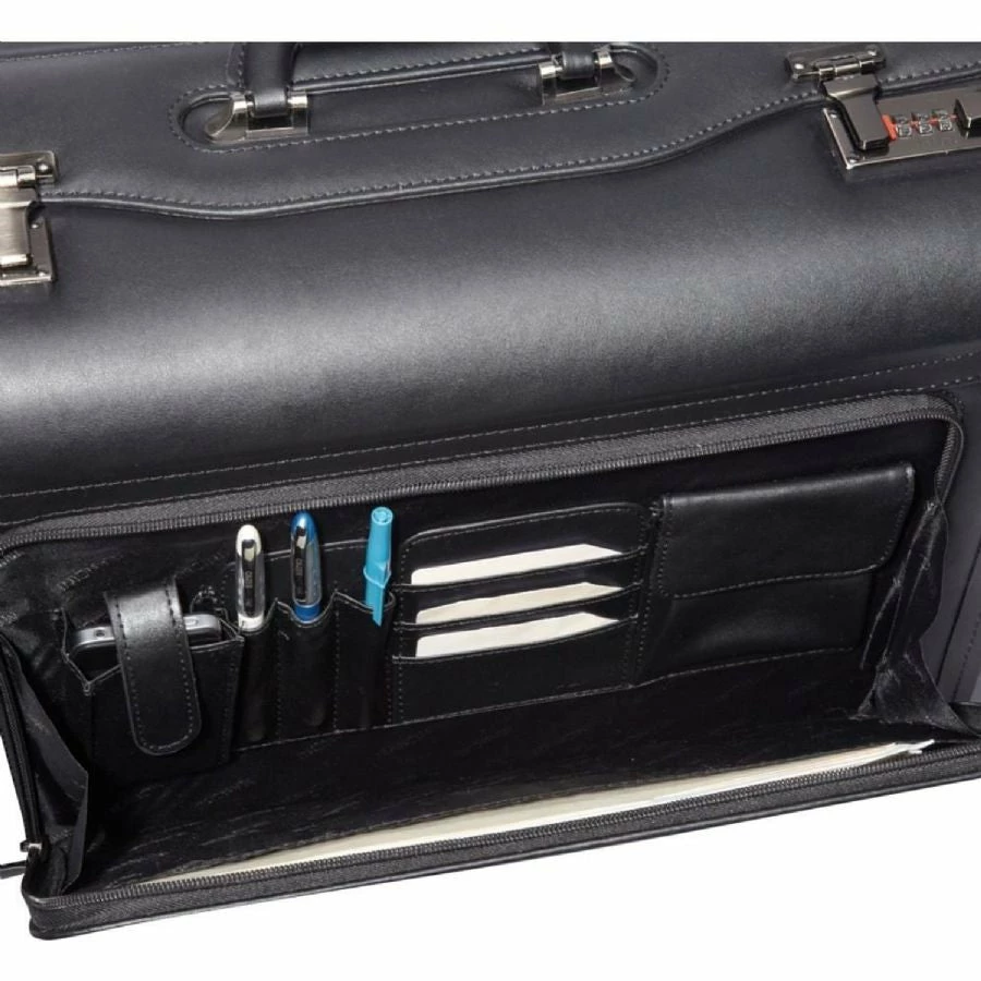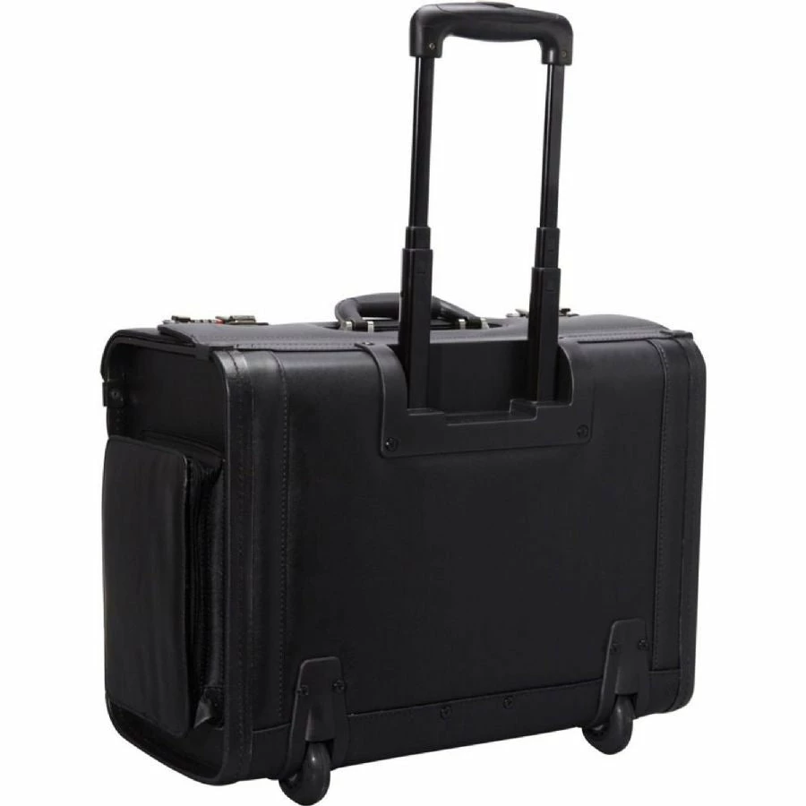 Itās allĀ BusinessĀ with our high-capacity wheeled laptop catalog case in black featuring a removable padded laptop sleeve to ensure that your laptop is safe and secure. This versatile genuine leather case is equipped with a zippered front organizer and separate compartments designed for transporting documents, folders, product samples, and lots more!