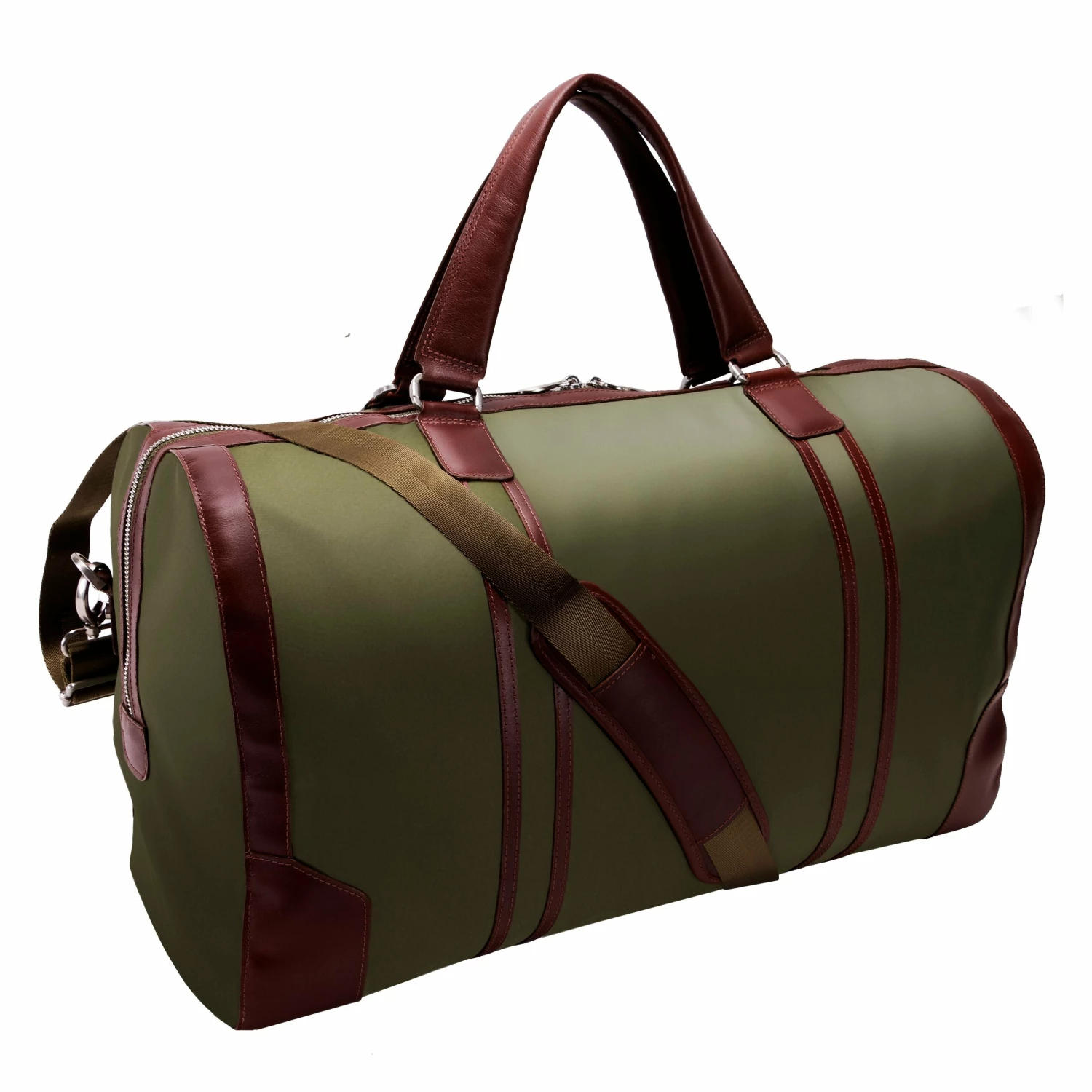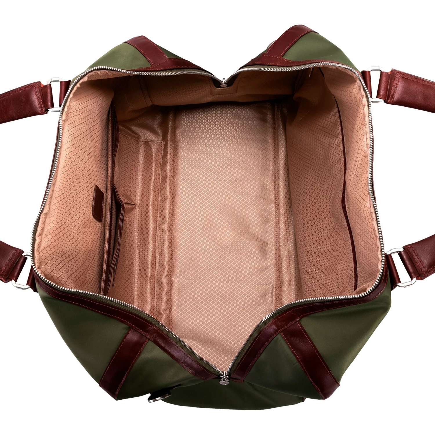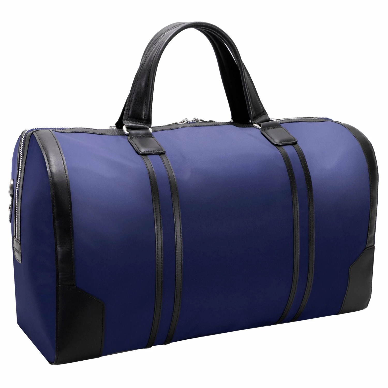 The McKlein USA Pasadena Nylon 20″ Carry All Duffel in Assorted Colors is a spacious nylon duffel with leather accents. Fully-lined interior with leather accents. Interior tablet pocket with organizer for business cards, pens, and accessories. Interior secure zipper pocket. Silver accent hardware and metal zippers . Easy access secure back zipper pocket. Removable and adjustable nylon strap with leather shoulder pad.