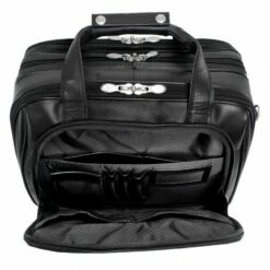 The Piel 22″ Wheeled Traveler Case features a front-zip compartment with two dividers for files, etc. Zip-around opening to main compartment with two side zip-pockets, elastic straps to secure clothing, and large mesh pocket on the inside flap. Two front zip-pockets, top and side handles, piggy back strap, telescopic handle system, and roller blade wheels.