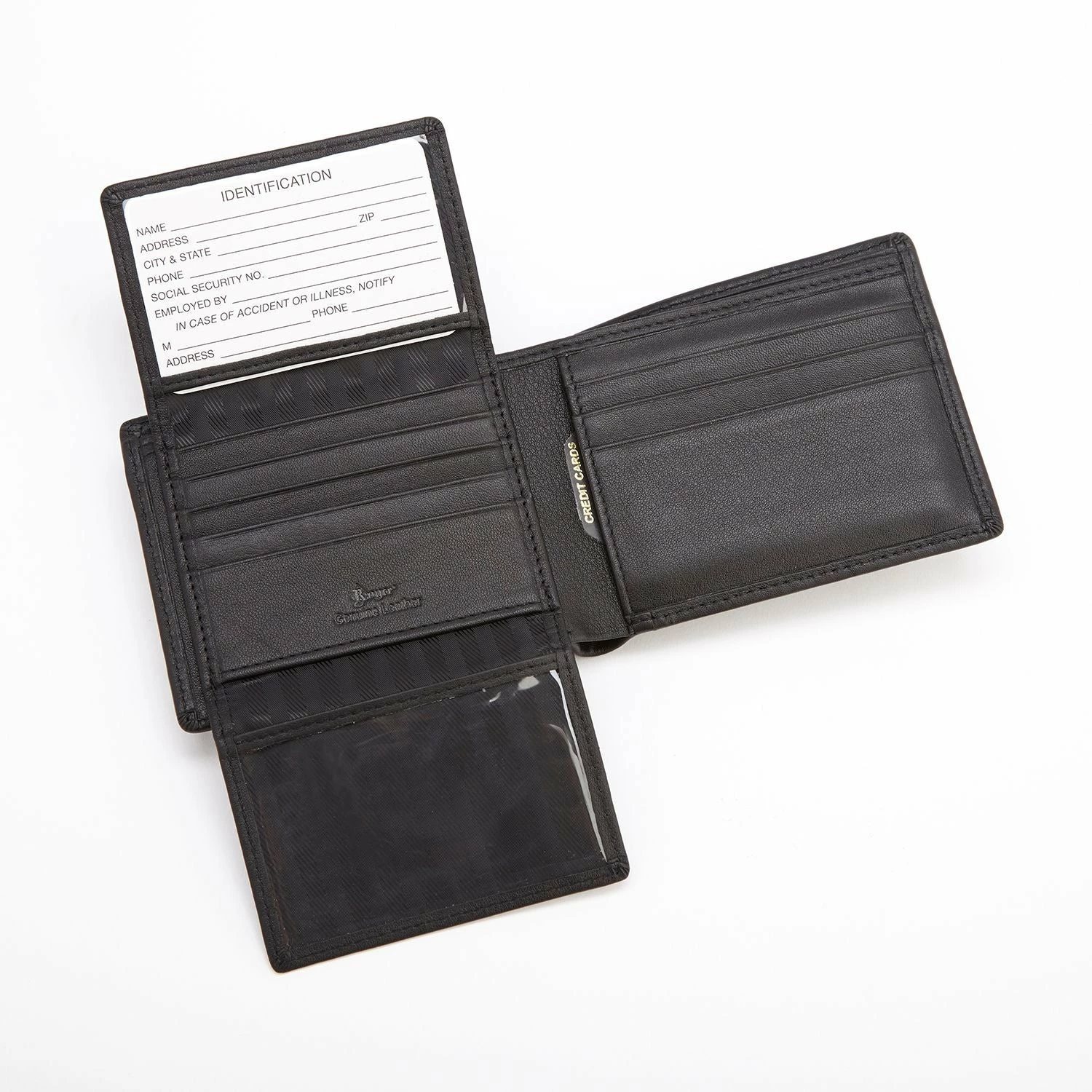 RFID (Radio Frequency Identification) tags are now being placed in US Passports, credit cards and other forms of identification. Protect your information from hackers by using a ROYCE RFID Blocking Wallet in Genuine Leather. This Genuine Leather Bifold Wallet in Genuine Leather features a built in shield that blocks radio frequencies embedded in your Credit Cards and IDs. Left inside features a dual flip open section to reveal 2 ID windows and 5 credit card pockets. The right side has 3 additional credit card pockets. The interior features 2 bill pockets, one leather lined. Close it up and on the back is an additional wide slot pocket. This is completed with a 6 flip picture/credit card insert. Personalized up to 3 initials. Initials give this attractive leather wallet an extra special touch and makes it a great gift. Items with personalization can not be returned.