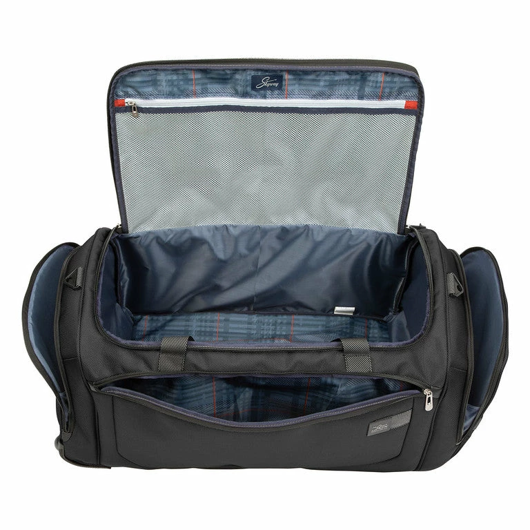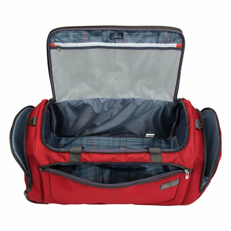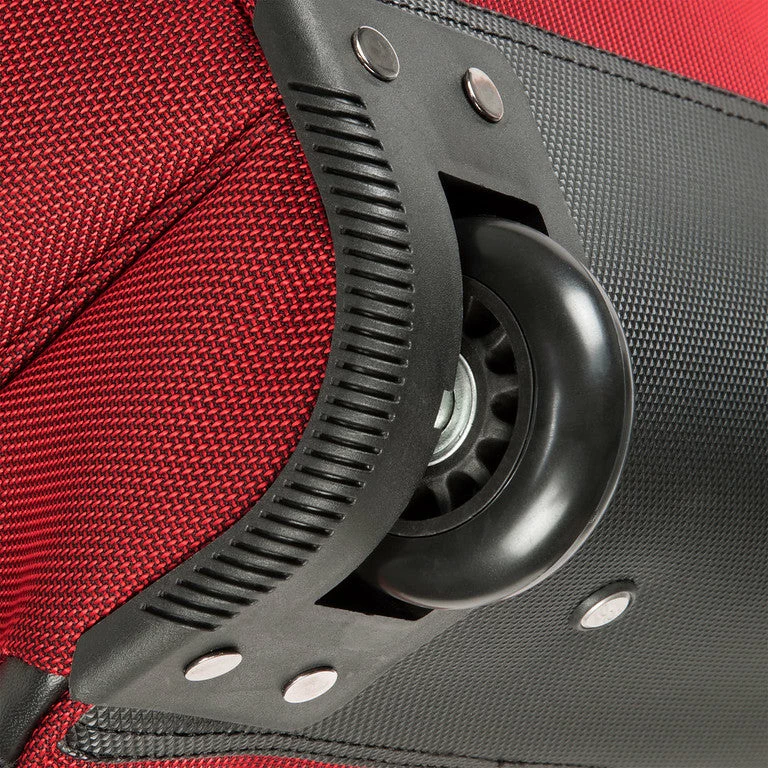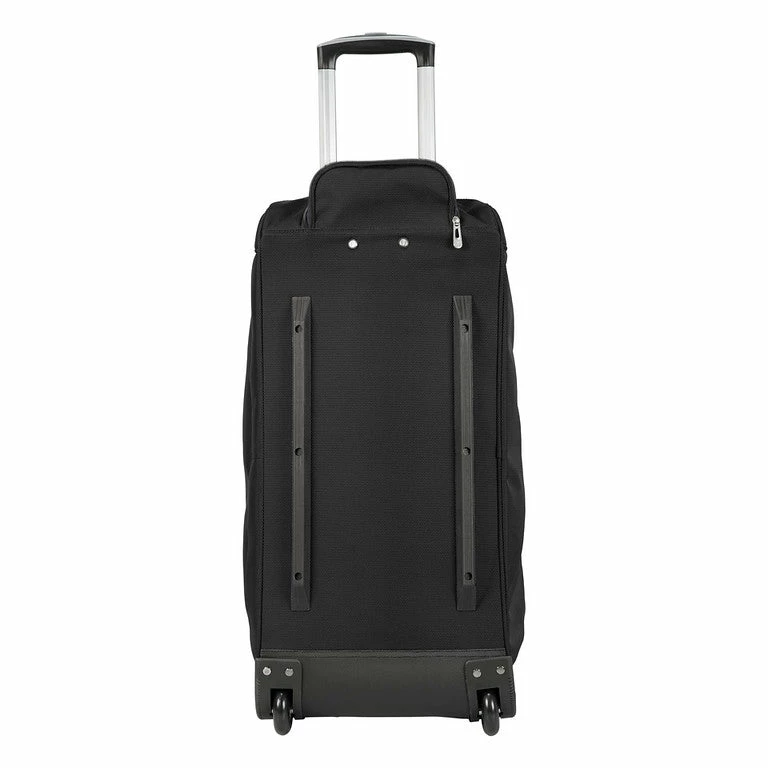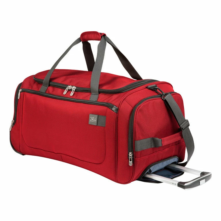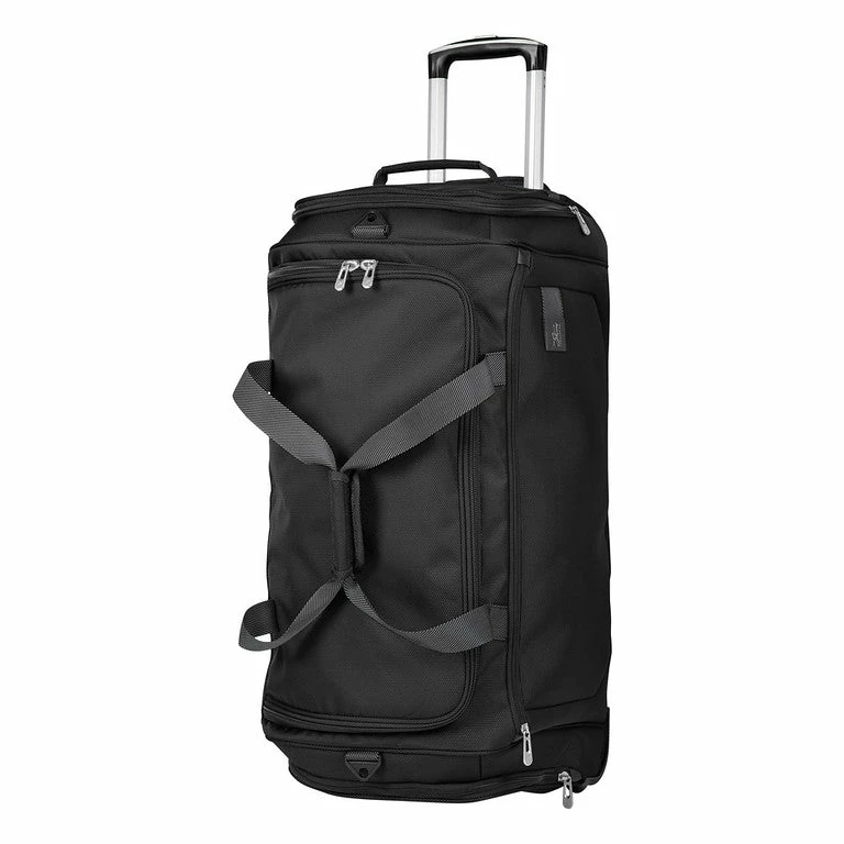 This mid-size rolling duffel makes a great travel bag for medium-length trips that last a few days to a week. Ideal for frequent travelers, this wheeled duffel features a hideaway telescoping handle, smooth-rolling in-line wheels, multiple pockets, and top entry lockable zippers (lock not included).